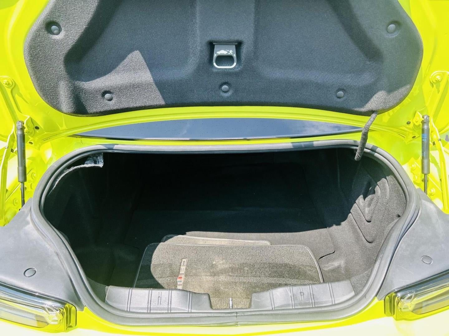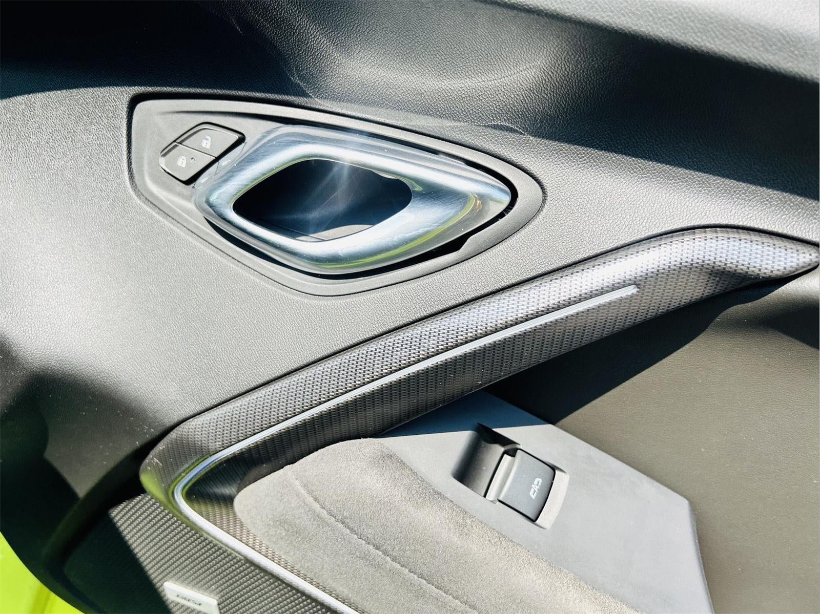 - Black fuel filler door with visible carbon fiber insert